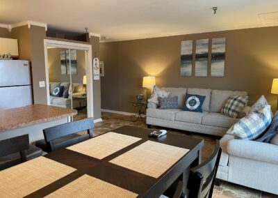 This unit has a queen bed in each bedroom. One bedroom also has a sleep sofa and the other has a daybed with 2 twin beds.